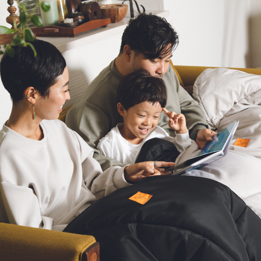 フルオープンにすると毛布のようになるので、肌がけとして使えます。お昼寝にもピッタリ。暖房費も節約に
